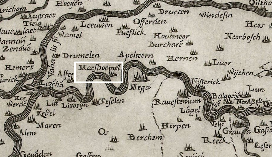 In een zeventiende-eeuwse charterinventaris wordt melding gemaakt van het stadsrecht van 15 augustus 1312: Diploma privilegiorum oppidi et oppidanorum in Maesbommel per Reynaldum comitem Gelriae datorum, in quo vult eos eadem libertate frui qua burgenses in Insula Dei. Date die beatae Virginis 1312. In pargamento cum uno sigillo. De stedelingen van Maasbommel zouden dus de vrijheid van de burgenses in Insula Dei genieten. Insula Dei duidt op Roermond waarheen Maasbommel te hoofde diende te gaan.